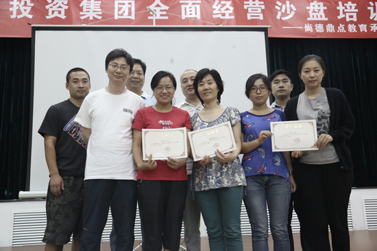 本次全面经营沙盘培训以鼎一公司荣获第一名,并一举摘得最佳总经理、最佳财务总监、最佳市场总监、最佳销售总监的称号,为活动画上了完美的句号!